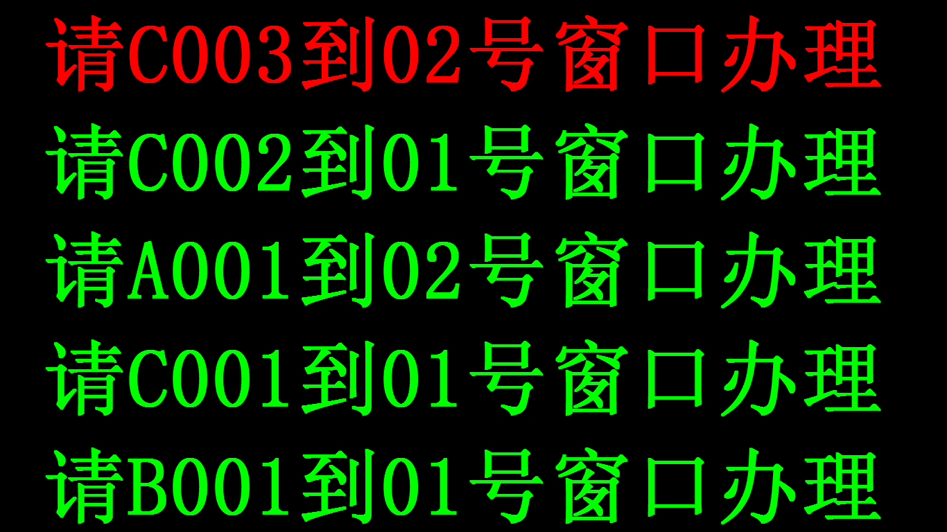 工作人员只需按“下一位”按钮,则客户的排队序号就会按顺序的显示在该服务柜台上方的液晶窗口显示终端上,同时也在液晶综合屏上显示,并发出“叮咚,请1015到01号窗口”声响,提示该客户前往该窗口办理业务。
