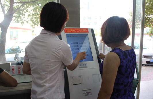 当客户到达服务大厅时,前往放置在入口处旁的立式取号机,并按一下其上的相应业务按钮,打印机会自动打印出一张排队序号单。单上按需要可设定不同信息内容。与此同时,系统自动将该系统序信息传送至相关柜台。